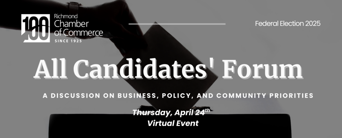 Please submit your questions in advance by emailing rcc@richmondchamber.ca with the subject line: Question for All Candidates' Forum.